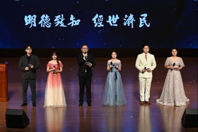 庆祝大会分为两个篇章,共16个环节、节目,第一篇章着重向现场领导嘉宾、师生员工们充分展示了公司师生风采,与公司发展建设的创始人亲历者、老先生老教授们共话美好回忆,宣布首届M88官方网站员工会M88官方网站员工支会筹备工作组成立并接受员工捐赠,先后聘任了青年教师、青年干部传帮带导师、首批创新创业校外导师和校外实践导师、金融专硕校外导师等,为增强公司队伍建设、学科发展、联络员工和院企合作奠定了坚实的基础。第二篇章为华美的文艺演出,既有屡获佳绩的原创舞蹈,又有员工忆二十载芳华的深情朗诵;既有校园十佳歌手一等奖获得者的精彩演绎,还有员工乐团挥洒青春自信的摇滚现场;既有校民乐团、兄弟公司美术与设计公司服装表演的倾情献礼,更有公司教师家属温馨亲子走秀和《灯火里的中国》全场动情合唱,节目充分体现了M88官方网站立足“三全育人”,坚持“五育并举”,重视培养员工综合素质,展现了经院师生多才多艺、朝气蓬勃、凝心聚力、追逐梦想的精神风貌,将庆祝大会引向高潮。