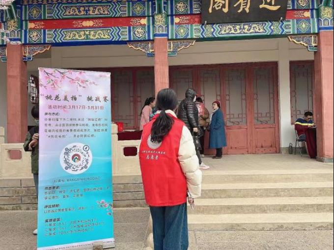 志愿者们来到红桥区桃花园,协助工作人员进行汉服十二花神展非遗展两个点位的准备工作。活动开始后,现场通过天津发布微博、天津发布微信视频号、津云app等平台进行了同步直播。志愿者们也充分发扬主动干精神,积极维护外围秩序,随时观察直播进行情况,引导群众观赏路线,在保障大家人身安全的同时,让市民朋友们都沉浸在诗意灵动的粉红花海的美景中,解锁吃喝玩乐一站式享受。